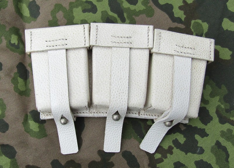 K98WH.Reproduction K98 pouches. White leather for winter camouflage. These are genuine cow leather. The pebble finish is same as the original German ones. Made with 1pc steel studs. $29.95