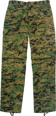 Digital woodland camouflage 6 pocket BDU pants. 55% cotton , 45% polyester. Sizes Small, Med, Large, XL $29.95 Size XXL $34.95