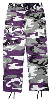 Violet camouflage pants ,cotton/poly. Available in sizes Small , Medium , Large, XL. $26.95 XXL , XXXL. $29.95