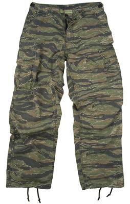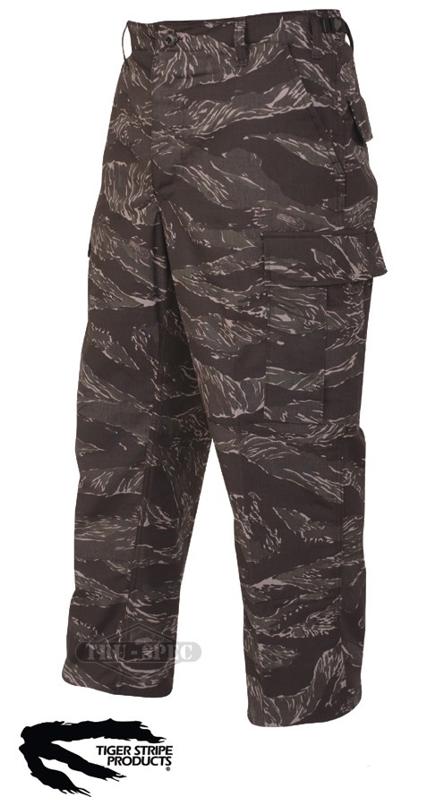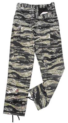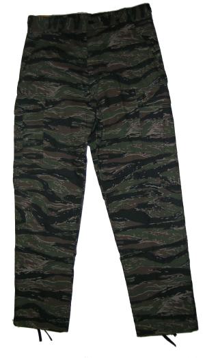 Tiger Stripe products Vietnam style tiger stripe camouflage 6 pocket BDU style pants. 100 % cotton ripstop. Sizes XSMALL-XL $42.95, XXL-XXXL $45.95