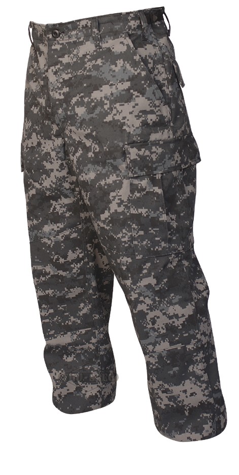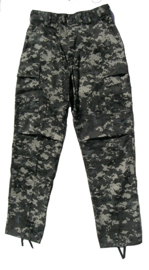 Rothco ACU digital camo BDU pants 55/45 Poly/Cotton twill. Sizes Small, Med, Large, XL $29.95 Size XXL $34.95 Available in regular and long length