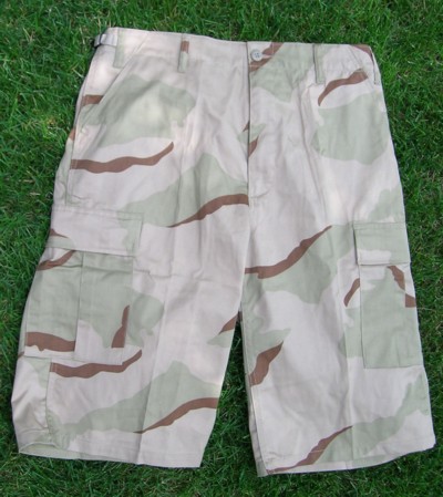 Desert tiger stripe pattern 6 pocket BDU shorts. 100 % cotton ripstop. Sizes Small,Medium, Large, XL $29.95 , XXL, XXXL $31.95