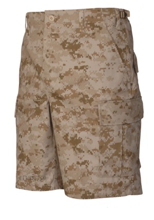 Digital desert camouflage 6 pocket BDU shorts. 65/35 poly-cotton twill. Sizes Small,Medium, Large, XL $29.95 , XXL, XXXL $31.95