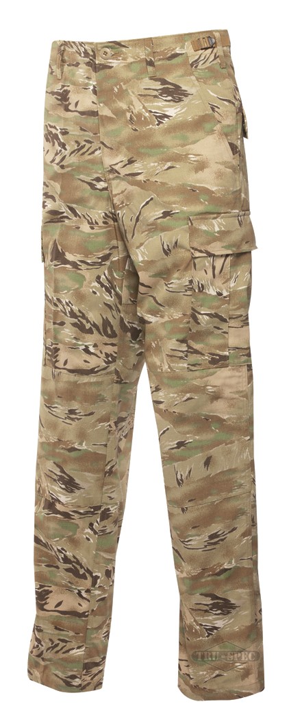 Desert tiger stripe pattern BDU pants. 100 % cotton ripstop. Sizes SMALL-XL $42.95, XXL-XXXL $45.95