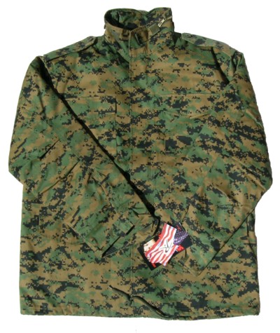 digital woodland M65 jacket. Water repellant poly/cotton twill, concealed hood, removable quilted button-in liner. $79.95 Sizes XS-XL
