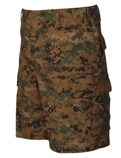 Digital woodland camouflage 6 pocket BDU shorts. 65/35 poly-cotton twill. Sizes Small,Medium, Large, XL $29.95 , XXL, XXXL $31.95