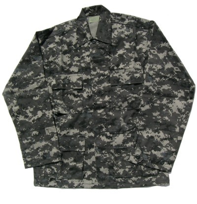 ACU digital camo BDU shirt. Sizes Small, Med, Large, XL $29.95 Size XXL $34.95 Available in regular and long length