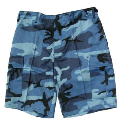Blue camouflage BDU style camouflage shorts ,cotton/poly. Small , Medium , Large, XL. $24.95 XXL . $27.95