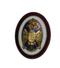 Nickel plated metal. Attractive design with engraved Serbian Royal coat of