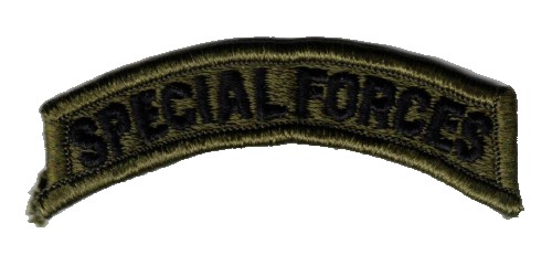 US21.Vintage U.S. Special Forces Sleeve Arc. Black on O.D.. Sew on. $3.95 ea |