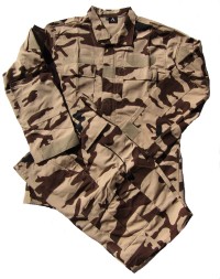 CHAD1.Chad Army Desert camouflage sets, Shirt has 2 upper pockets, 2 sleeve pockets. Pants have 2 front pockets, 2 cargo pockets, 2 back pockets.65/35 Poly/Cotton ripstop. Nice sets. Available in sizes Large and XL. $99.95 |
