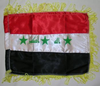 | IF1.Iraqi small flag with gold fringe. Size about 8.5 x 12 inches. $20.00 |